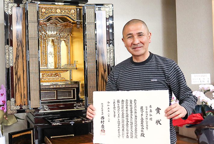 仏壇づくりで日本一4連覇を果たした蓮池稔(はすいけ みのる)さん。
